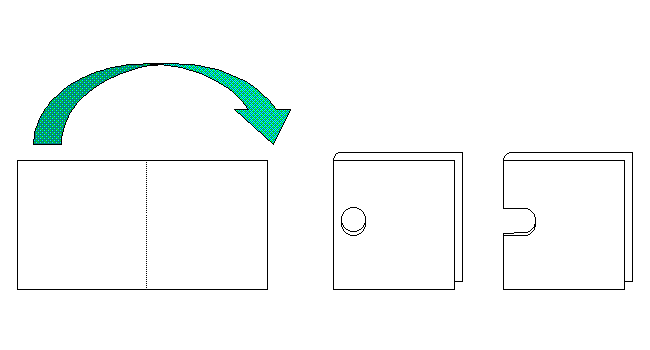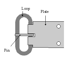The loop can be cut from brass or iron plate (~2mm), or brass oval rings can sometimes be bought from leather shops. The pin can be bent from brass rod (1/8" or 3/32") or thin nails. The belt plate must be cut from thin sheet metal (see fig.2). Cut to size and bend over a nail. Drill a hole through the folded plate and cut in to the hole to make a notch for the pin. File the notch smooth.
